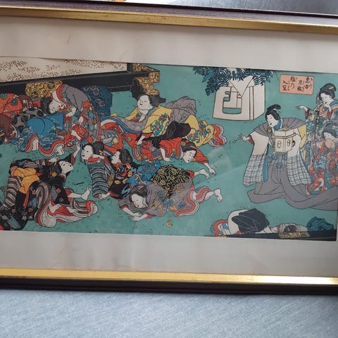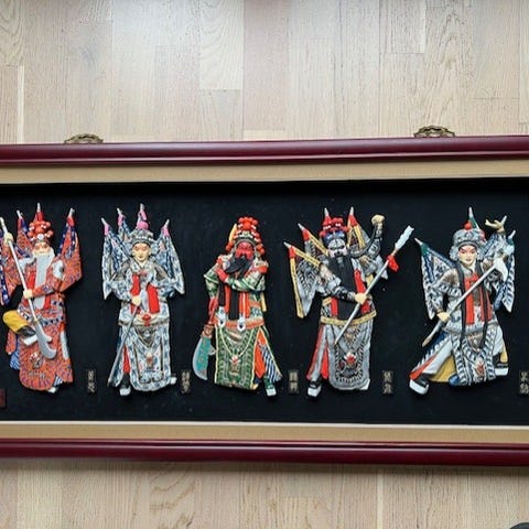 Original «An Imitation of an Ancient Small Screen» (Shu Lin Gong Yi) med motivet «Portrait of a Lady». Ny og kun ligget i eske. 6 lakkerte paneler i størrelse 24cm*8cm. Tung og god kvalitet.
