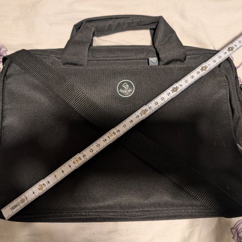 Pent brukt og ingen synlige bruksmerker utenom to manglene «logomerker» på glidelåsene øverst.