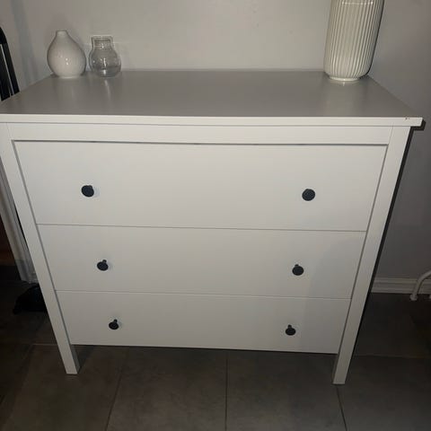 Selger Songesand kommode på grunn av plassmangel i ny leilighet. Den har noen merker på toppen, men jeg tror det kan gå bort med vasking med vann og såpe.