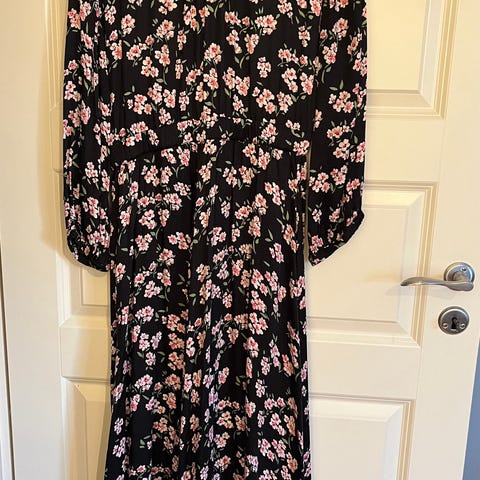 ByTiMo Festkjole med tyll i skjørtet i størrelse M, fargen svart og laget av viskose. Kjolen har 3/4 ermer med knapper og en V-hals. Super fin til jul og nyttår.