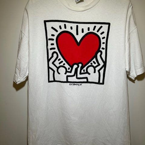 Tøff kul t-skjorte fra GAP med grafisk Keith Haring trykk. Kjøpt på Zalando på salg 350,- str L. Skulle egentlig ha M, så hadde håpet på at L var en liten L, men det var det ikke. Så den ble for stor. Også rakk man ikke å returnere innen fristen.