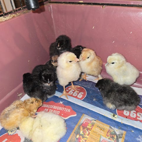 Klekket 13.01.2026 Har 7 kyllinger fra tidligere klekk til 120kr/stk (ca en mnd gamle)