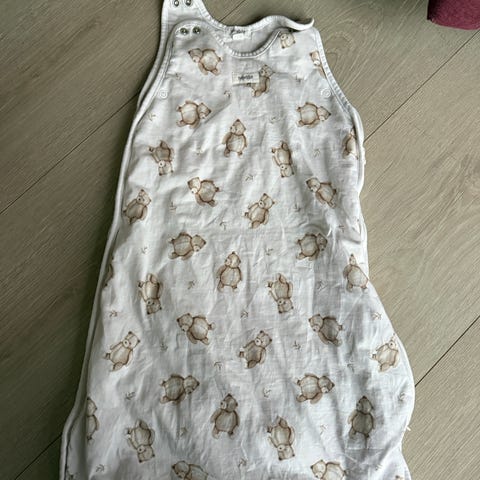 Newbie sovepose i økologisk bomull, hvit med mønster av bamser.
