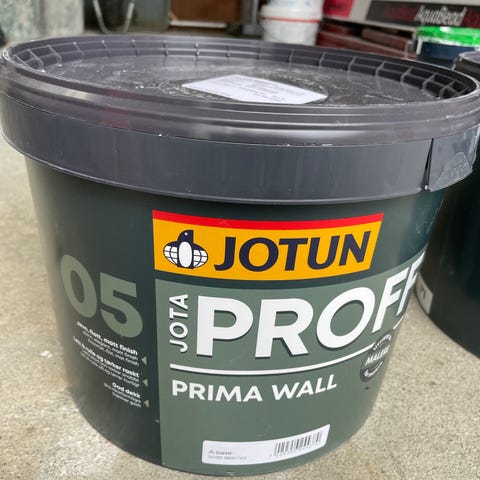Malte et par meter før vi innså at denne fargen totalt kræsjet i stua vår. Brukt ca 2 liter av bøtta