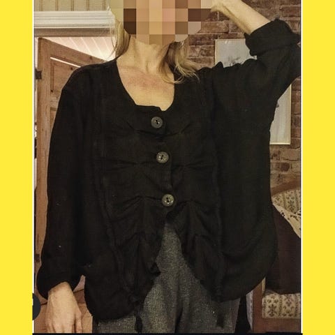 Selger en håndlaget strikket kåpe med hette i meget god stand.