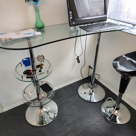 Selger et utrolig fint barbordssett bestående av ett barbord med praktisk hylle på siden (perfekt for oppbevaring av glass/pynt) samt 2 barstoler.