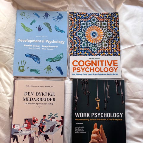 Selger Biological Psychology, developmental psychology og psychobiology lærebøker, hver for seg for 250kr eller 600kr for alle tre sammen :)