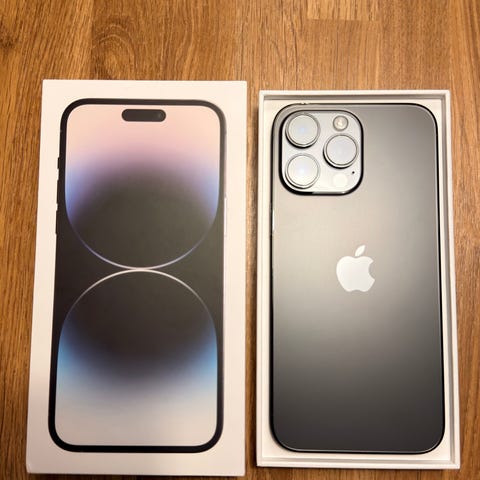 Helt ny iPhone 14 Pro Max med 128 GB lagring. Batteriet er 100 % og telefonen er ubrukt. Selges uten ekstra tilbehør – kun selve telefonen.