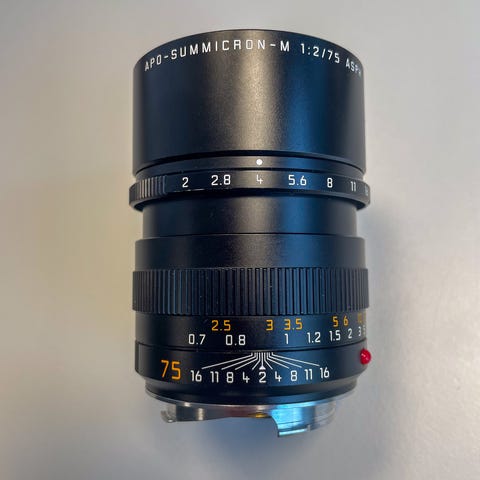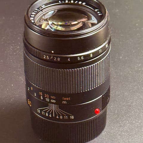 Selger et Leitz Wetzlar Leica R 180mm f/2.8, et legendarisk teleobjektiv kjent for svært høy optisk kvalitet, flott kontrast og nydelig bokeh.