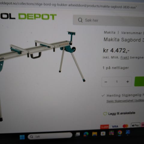 Makita sagbord WST01 selges. Solid bord som kan legges sammen, store hjul gjør det enkelt å trille. Meget lite brukt. Pris på nytt varierer alt fra 7 til 11 tusen hos forskjellige forhandlere. Fornuftige bud kan vurderes.
