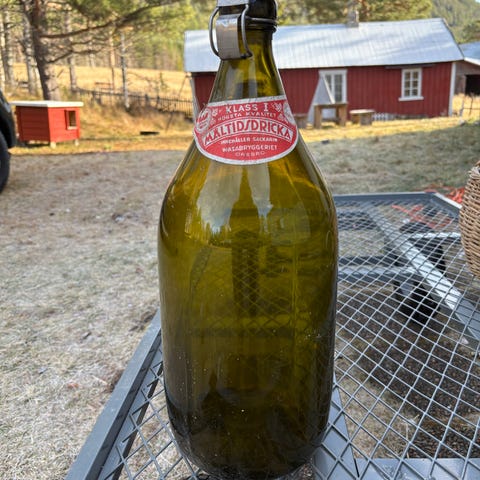 Flasken er pent brukt stand med normal aldersslitasje. Ingen sprekker i glasset. Et flott samleobjekt til bar, hytta eller juleutstilling.