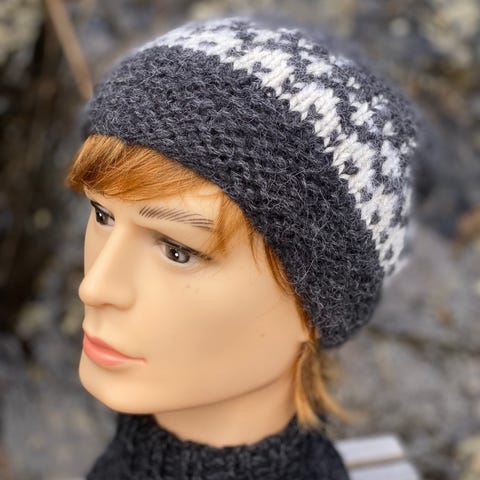 Fin lue i ull/alpakka, håndstrikket, ny -herre/dame