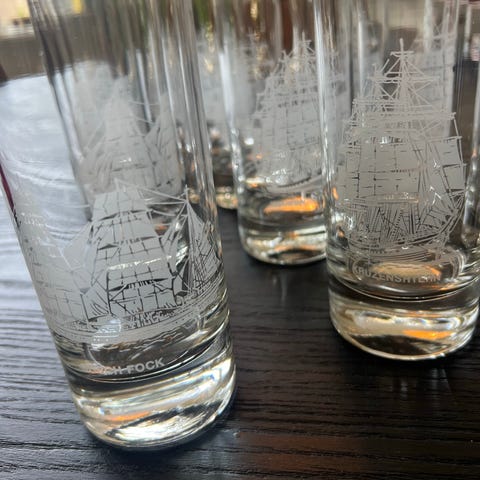 Vakre glass m seilskuter inngravert 6 stykker, skuteglass