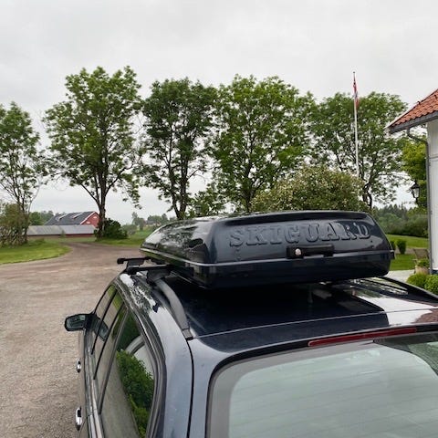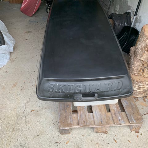 Lav / nedsenket i stativ , Skiboks /takboks som er ikke skadet eller ødelagt, opnes og lukkes , mangler nøkkel , lokkes fint uten nøkkel