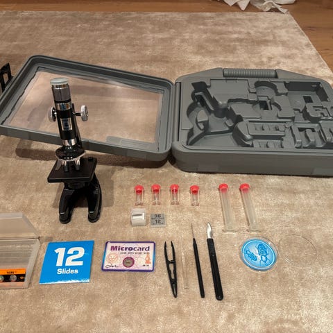 Utforsk detaljer med dette mikroskopet med opptil 120x forstørrelse med innebygd LED-belysning og justerbar zoom. Drevet av 1 AA-batteri, ikke inkludert.