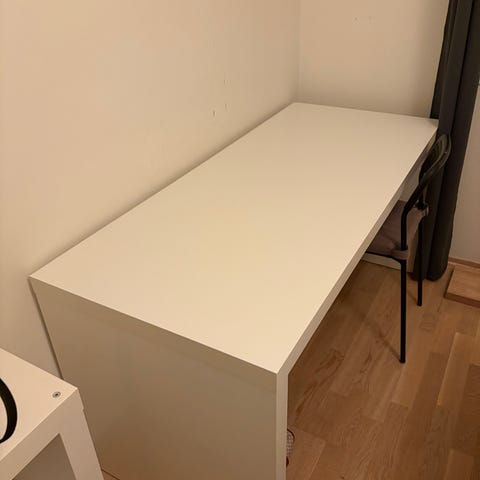 Pent brukt skrivebord gis bort. Må demonteres noe når dere henter. Noen små bruksmerker, men mulig de kan vaskes bort.