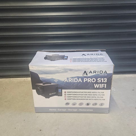 HBC CR400F avfukter med kapasitet på 250 m³/h, driftsspenning 230 V og frekvens 50 Hz. Produktet er laget for avfukting og inkluderer nødvendig strømkabel.