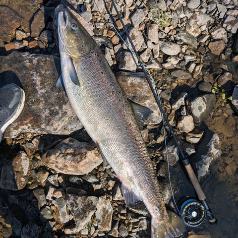 Brukt til storlaksfiske noen sesonger for ca 15 år siden, oppbevart i stangtuben siden. Reell kastevekt er 10-50.
