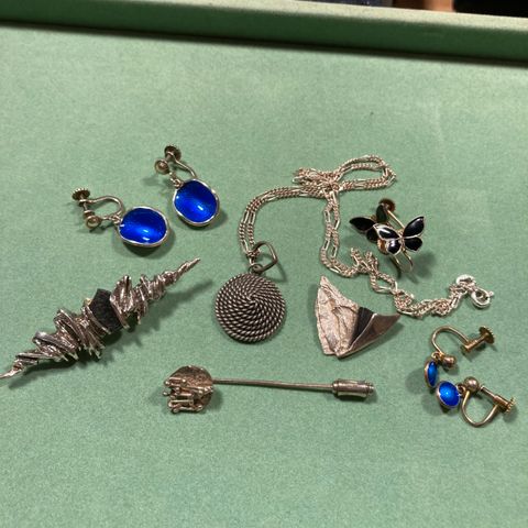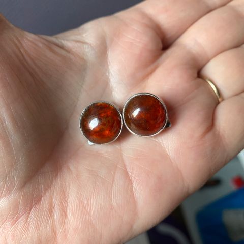 Selger et par øreringer i forgylt sølv av den norske sølvsmeden Astri Holthe. Øreringene er preget i 92,5% sølv (sterlingsølv), og er i utmerket stand. Produsert ca. 1980.