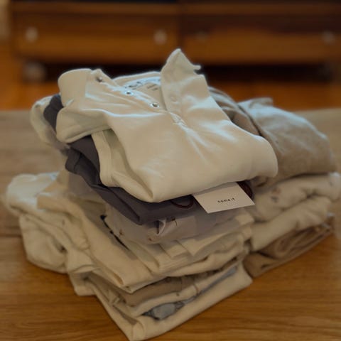34 plagg. Brukt til et barn, ikke alle plaggene er brukt. Stort sett pent brukte plagg.