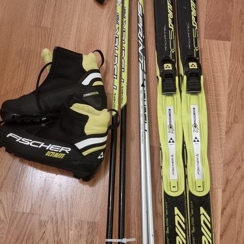 Fischer ski 130 cm smørefrie sko str 35 eller ,,, staver 110 cm.