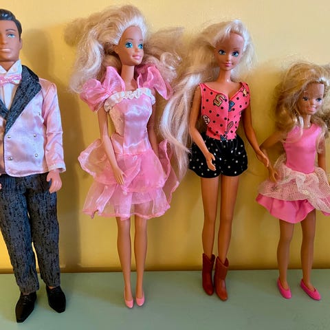 Barbiefamilie med tilbehør, - lekesett med bil og klær