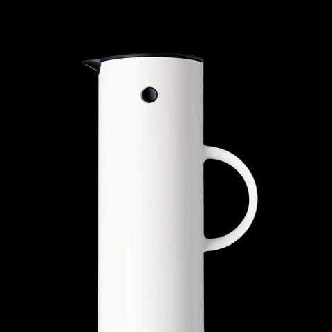 Stelton EM77 kanne og muggesett i svart. Settet inkluderer en termokanne og en mugge, designet for praktisk bruk i kjøkkenet. Materialet og størrelsen er tilpasset for daglig bruk.