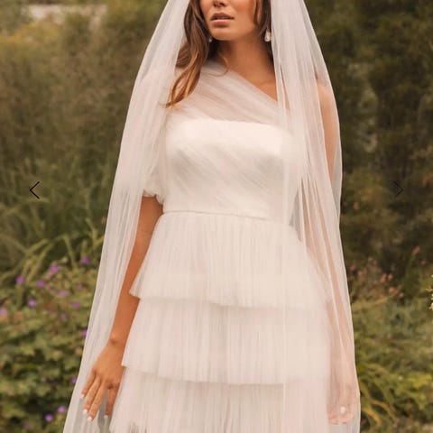 Nydelig kjole fra Malina som kun er brukt et par timer i bryllup som kjole nr to. Luftig og dansbar. Jeg er en S/M og synes denne satt veldig fint, prøvde også i M, men den var for posete under armene for meg.