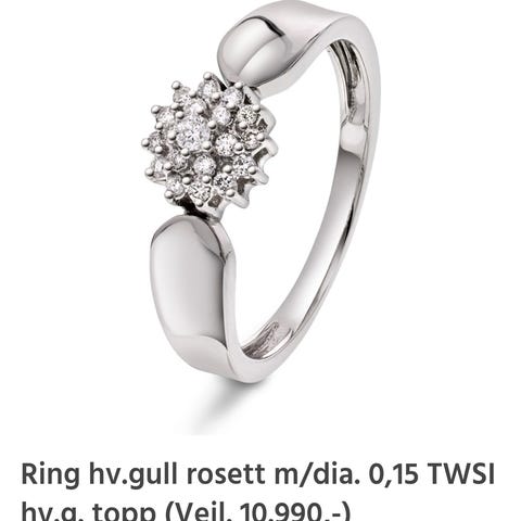 Rosettring hvitt gull m/ 9 diamanter