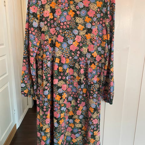 Hverdagskjole fra Monki i str medium. Kjolen er i fargen mørk grå. Den har en enkel og rett modell med korte ermer. 70% modal, 30% polyester.