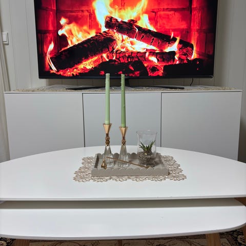 Veldig fin design hvor det passer med det meste hjemme, ( legg merke til at det er en liten sprekk på tv benken på bildene) denne kan man diskutere pris om.