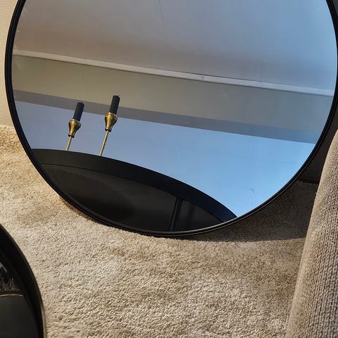 IKEA STOCKHOLM rundt speil med ramme i tre. Speilet har en enkel og moderne design som passer til ulike rom i hjemmet. Diameteren er tilpasset for bruk på vegg, og materialet gir et naturlig uttrykk.