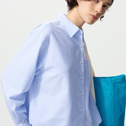 Denne skjorten har en moderne boxy silhuett og er oversized i passformen, noe som gir et avslappet, men sofistikert uttrykk. Den korte lengden gjør den perfekt å style med både jeans med høyt liv, vide bukser eller et skjørt.