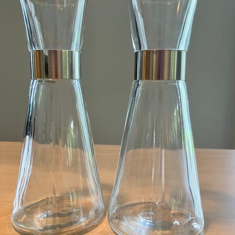 Rosendahl vannkaraffel laget i klart glass med metallring for enkel håndtering. Passer til servering av vann eller andre kalde drikker. Kan hentes i Tønsberg sentrum