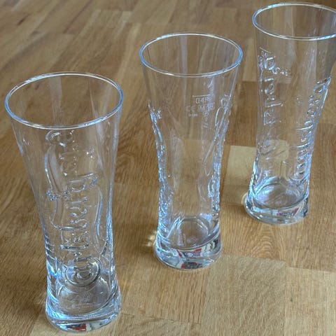 Ølglass i herdet glass med lasergravert logo i bunnen for å unngå skumming.