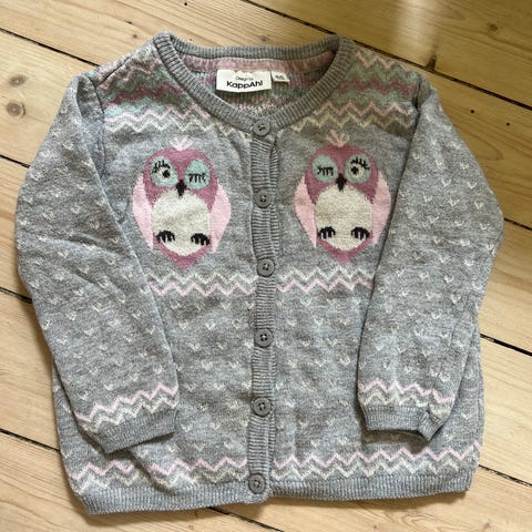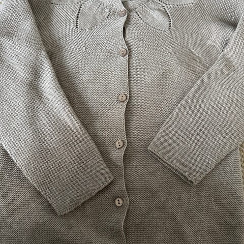 Veldig pent brukt, str. 110-116, 40% ull, 24% viskose, 30% bomull, 5% kashmir, 1% lurex, fantastisk kvalitet.