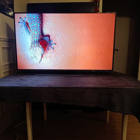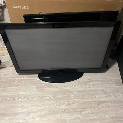 Samsung UE50AU710 TV med 50 tommers skjermstørrelse. TV-en har svart farge og inkluderer fjernkontroll, strømkabel og brukermanual. Modell med HDMI-porter og Ethernet-tilkobling.