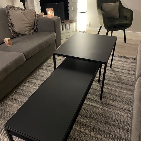 Salongbord selges. Liten skade på stål rammen langs gulvet.