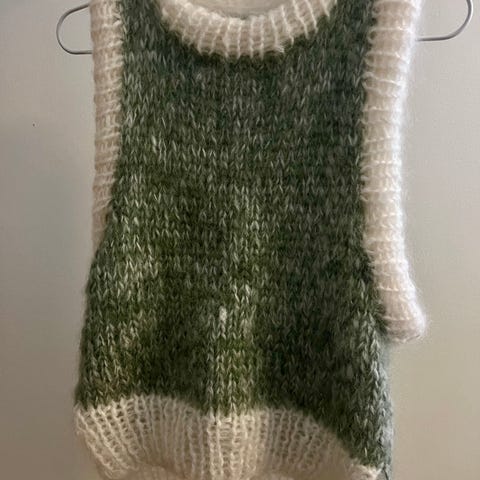 Hjemmestrikket vest, håndarbeid, ubrukt.