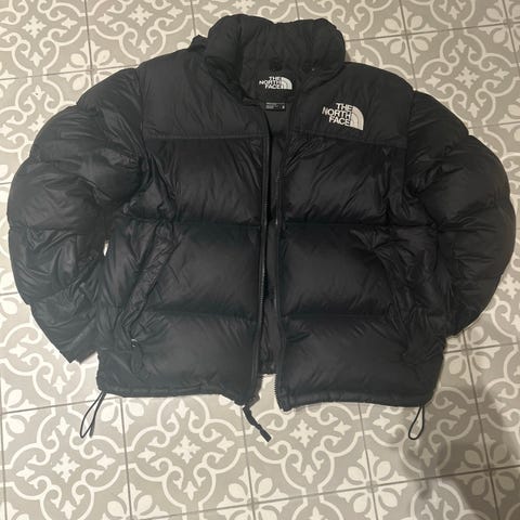 The North Face jakke i størrelse M, svart farge og laget av dun. Jakken er designet for menn og har isolerende egenskaper med dunfyll.