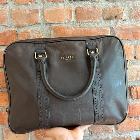 Ted Baker Lær Herre Lommebok laget av lær med mønstret overflate. Brukt kun et par ganger. Mørk blå farge.