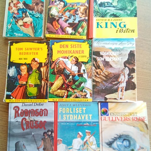 Pakke på 5 retro bøker. Selges samlet.