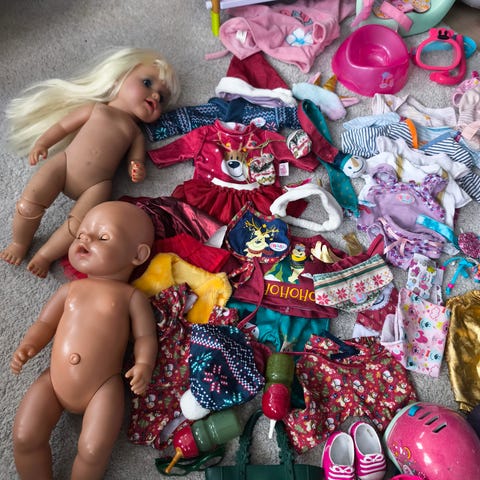 Stor pakke med 2 Baby Born dukker med ulike klær og tilbehør. Inkluderer dukker med forskjellige antrekk som juletema, vinterdress, jakker, kjoler, skjørt, bukser, gensere, strømpebukser, sokker, bodies, vesker, sko, støvler, skøyter, luer, briller, smykker, potte, bæresele med paljetter, bærebag, sykkelsete, sykkelhjelm, motorsykkelhjelm, flasker, smokker, bleier, kleshengere og kosedresser med reinsdyr og enhjørning. Har også badedrakt og armringer, flytemadrass og badering sånn at dukkene kan være med i f.eks. badekar eller svømmebasseng.