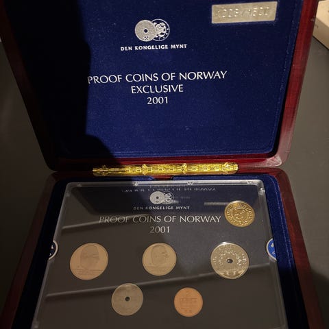 Proof gullmynt i kapsel.