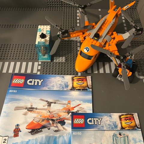 Er komplett. Med byggeinstruksjoner. Klistremerker vedlagt. Demontert, klosser lagt i pose. Uten original-esken.
