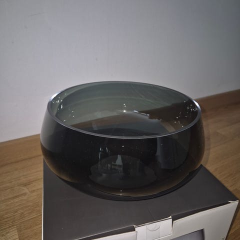 Fikk den i gave, men den passer dessverre ikke min stil. Munnblåst glass, håndlaget – hver bolle er unik.