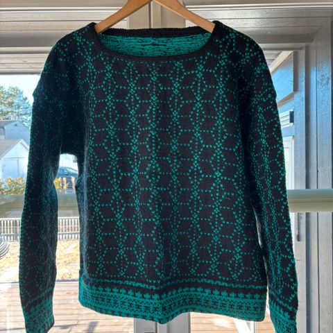 Flott og varm Per Spook hjemmestrikket genser. Tilsvarer størrelse L.
