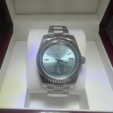 mod, Datejust style, custom mod, NH35, modded, build, skreddersydd klokke, prosjekt, custom watch, entusiaster, klassisk design, automatic watch, håndbygd klokke, parts, watch modding, custom build, unikt ur, vintage inspirasjon