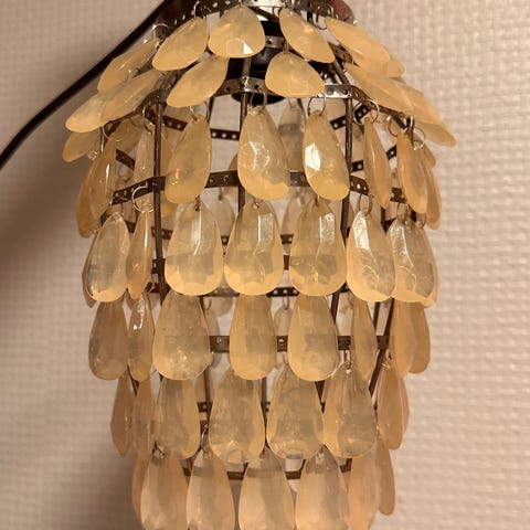 Retro lampe. Trolig fra 1950- eller 60-tallet. Ser ut som en keramikkvase med plastblomster. Inni plastblomstene er det små lyspærer og ledninger ned stengelen. Ledning og kontakt på utsiden nederst. Dessverre sluttet den å lyse for noen måneder siden. Kanskje noen greier å fixe denne og få den til å virke igjen? Høyde på hele greia er 37 cm. Fargene på plastblomstene er bittelitt falmet, men fine på sin måte ennå.