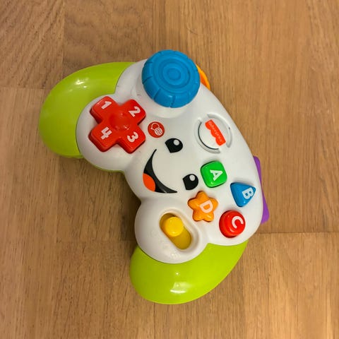 Fisher-Price Laugh & Learn spillkontroller for barn. Har flere fargerike knapper og hjul for interaktiv lek og læring. Passer som tilbehør til barnespill.